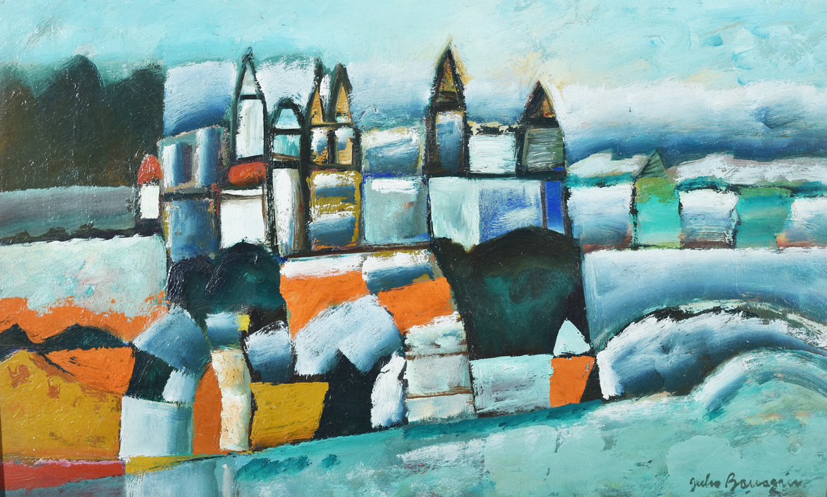 Escuela argentina, 1928 – 2011 «ATL» Oleo sobre hardboard. Mide 30 x 50 cm. Firmado abajo, a la derecha. Ref.: Obra titulada y firmada al dorso, por el artista. Base u$s 140