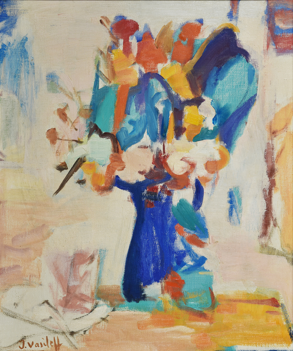 Escuela argentina, 1897 – 1966 «FLORERO» Óleo sobre tela. Mide 55 x 46 cm. Firmado abajo, a la izquierda. Base u$s 150