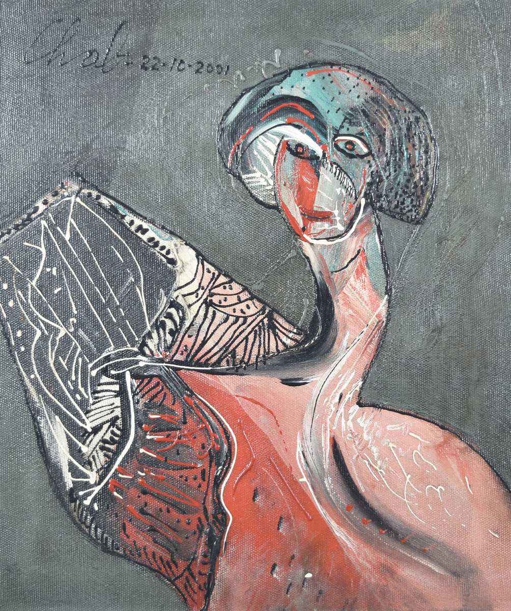Escuela argentina, 1930 – 2024 «LA MODELO» Acrílico sobre tela. Mide 53 x 45 cm. Firmado y fechado «20-10-2001» arriba, a la izquierda. Ref.: Obra titulada, fechada «2001» y firmada al dorso por el artista. Base u$s 250