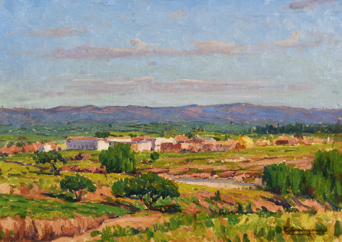 Escuela argentina, 1888 – 1964 «MINA CLAVERO» Oleo sobre cartón. Mide 27 x 37 cm. Firmado abajo, a la derecha. Ref.: Obra titulada, firmada y fechada «1935» al dorso, por el artista. Base u$s 150