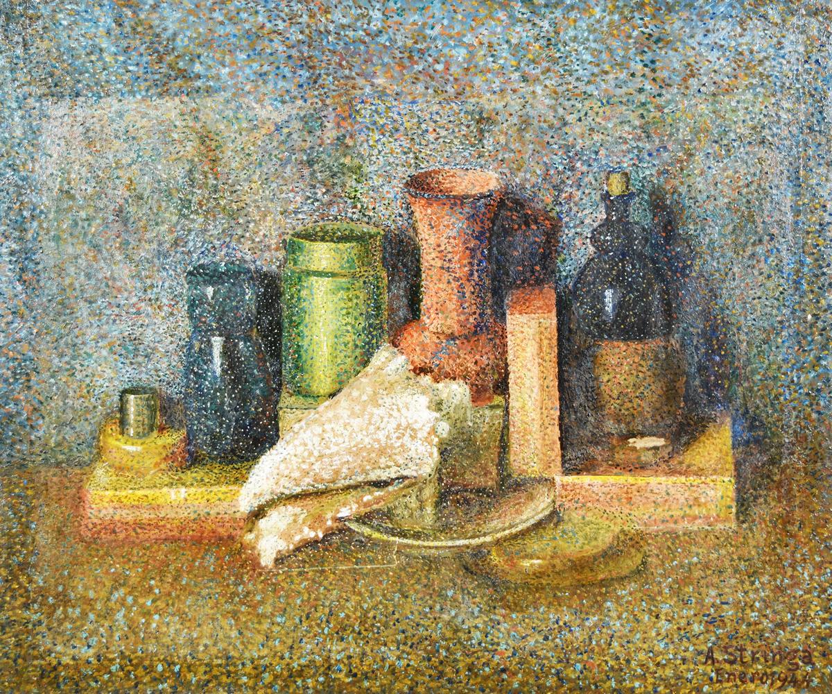 Escuela argentina, – «NATURALEZA MUERTA» Oleo sobre cartón. Mide 63 x 78 cm. Firmado y datado «Enero 1944» abajo, a la derecha. Ref.: Con boleta de compra del Banco Ciudad, al dorso, con fecha 28/6/2011. Base u$s 200