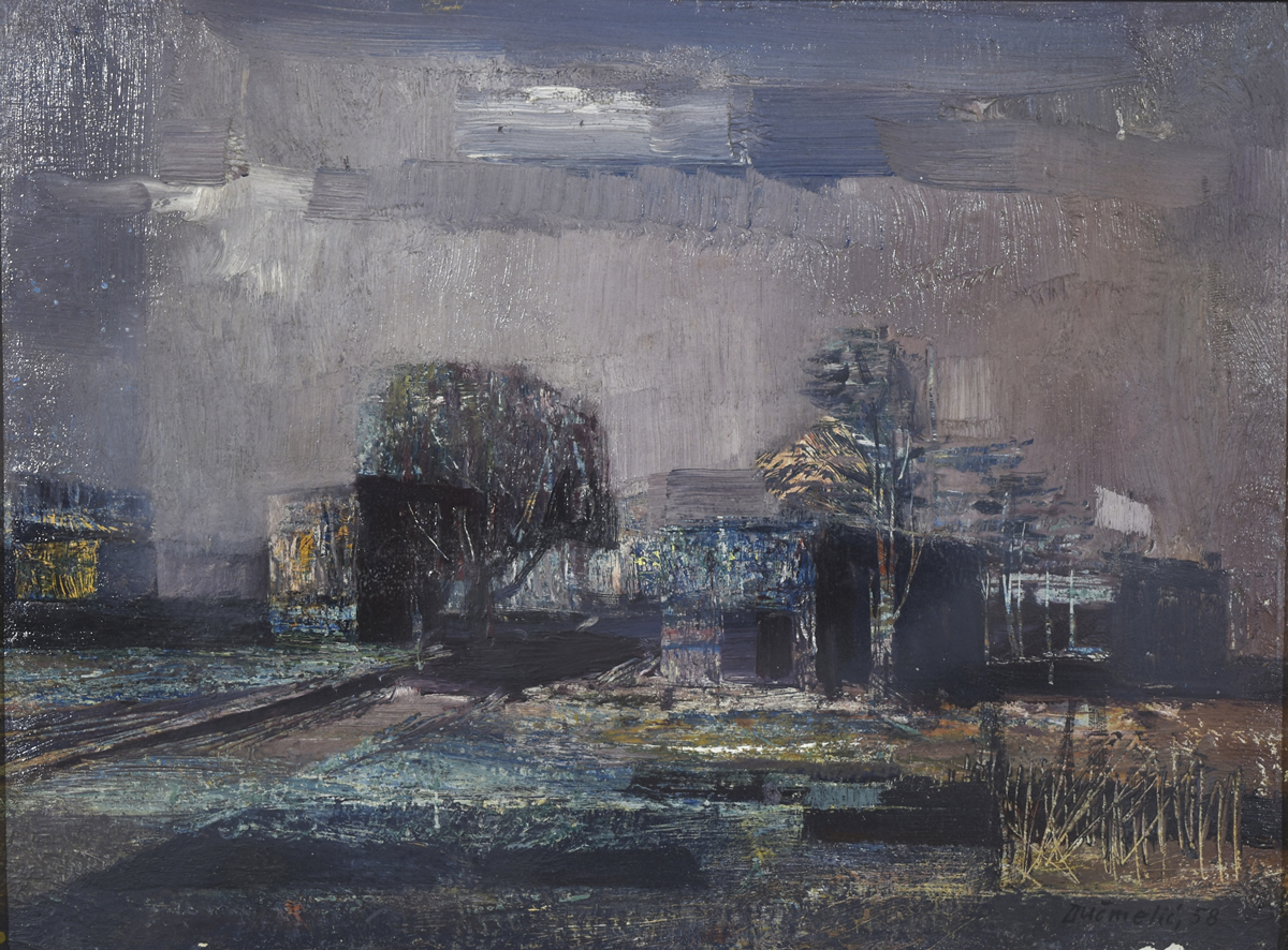 Escuela argentina, 1923 – 1989 «PAISAJE» Oleo sobre cartón. Mide 28 x 38 cm. Firmado y fechado «58» abajo, a la derecha. Base u$s 350
