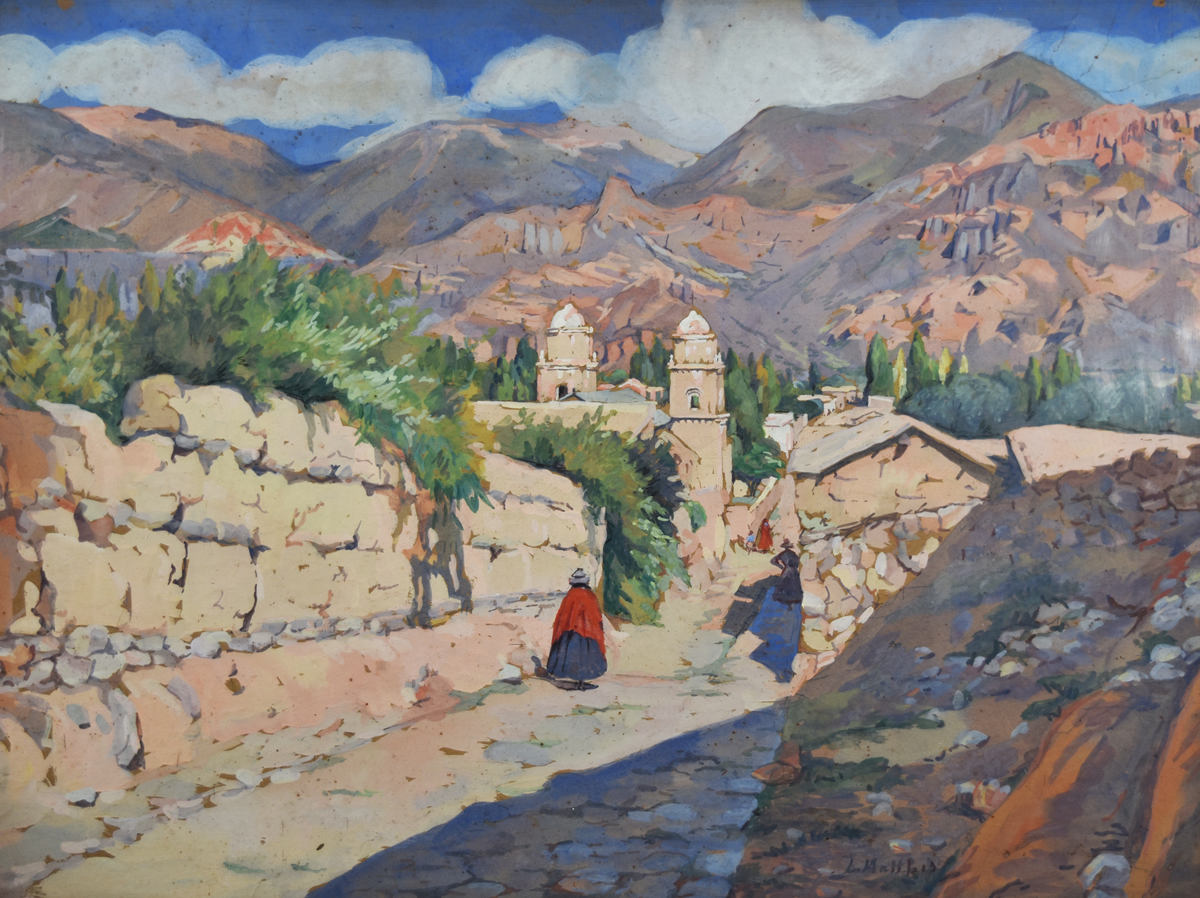 Escuela argentina, 1883 – 1952 «PAISAJE (TILCARA)» Gouache sobre papel. Mide 54 x 72 cm. Firmada abajo, a la derecha. Base u$s 1500