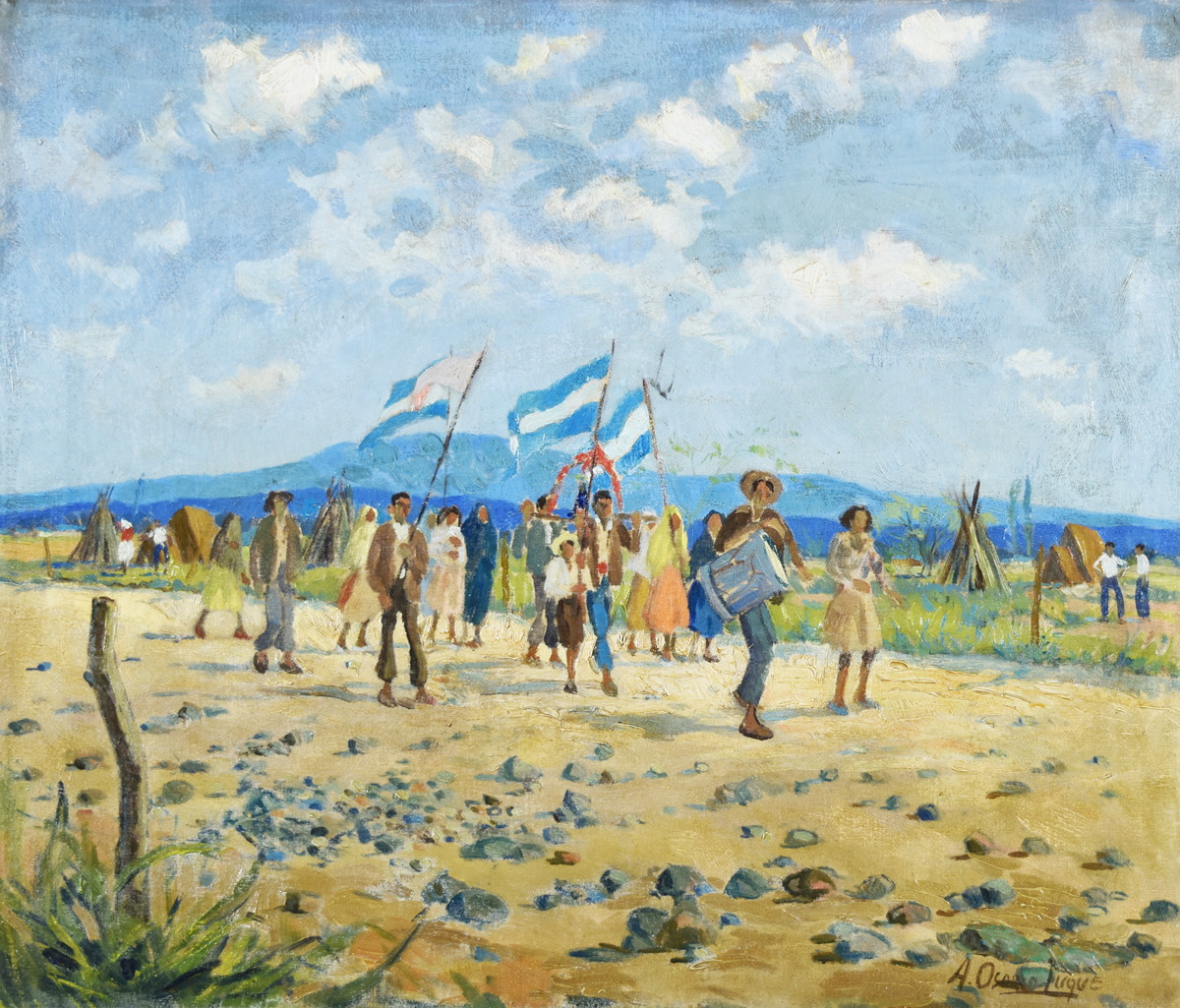 Escuela argentina, 1913 – 1969 «MISACHICO» Óleo sobre tela. Mide 60 x 70 cm. Firmado abajo, a la derecha. Ref.: Obra titulada y firmada al dorso, por el artista. Base u$s 300