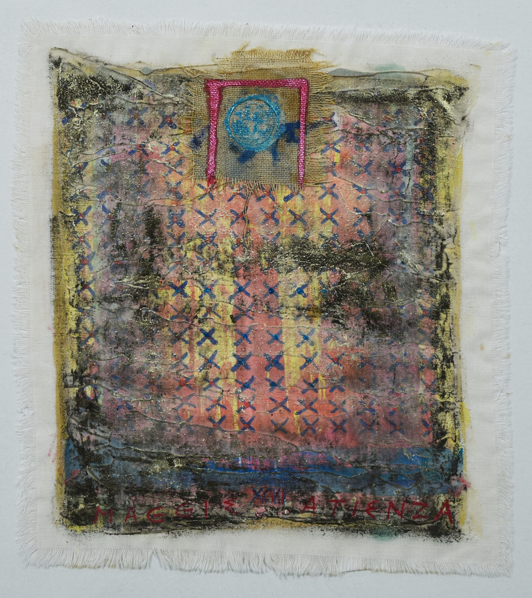 Técnica mixta sobre tela. Mide 20 x 18 cm.