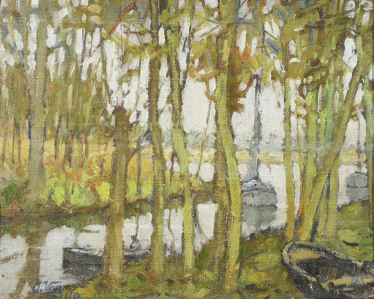 Escuela argentina, 1909 – 1987 «PAISAJE» Óleo sobre tela montada en hardboard. Mide 32 x 40 cm. Firmado y fechado «40» abajo, a la izquierda. Base u$s 200