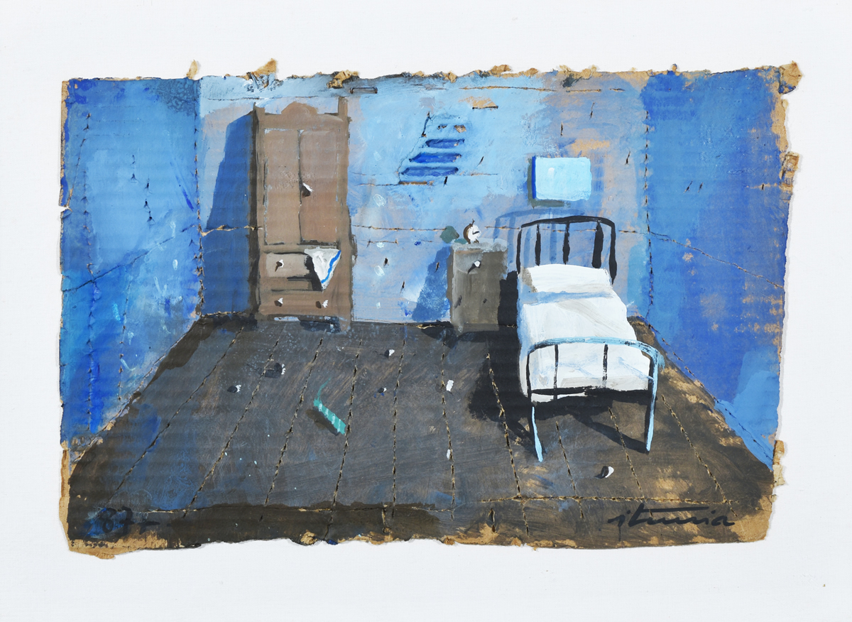 Escuela uruguaya, contemporáneo. «CUARTO» Oleo sobre cartón. Mide 21 x 31 cm. Firmado abajo, a la derecha y fechado «87» abajo, a la izquierda. Base u$s 900