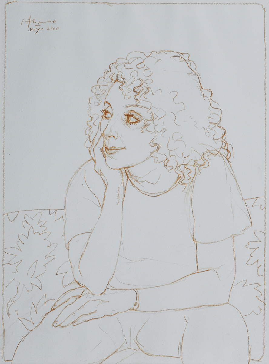 Escuela argentina, contemporáneo. «PENSATIVA» Dibujo sobre papel. Mide 39 x 28 cm. Firmado y datado «Mayo 2000» arriba, a la izquierda. Base u$s 200