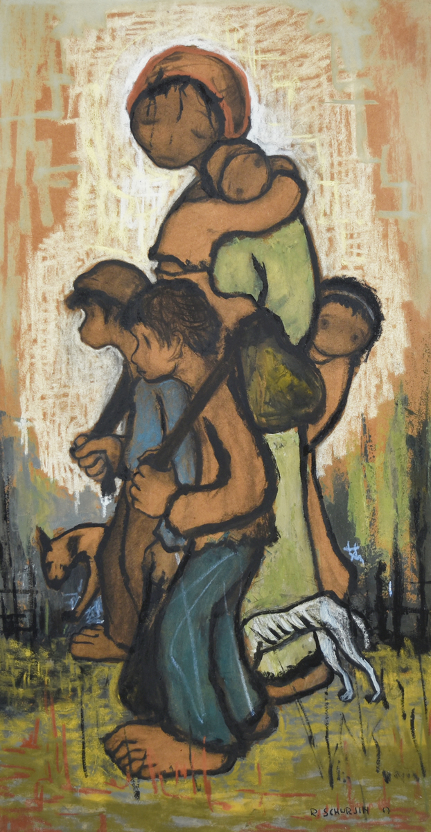 Escuela argentina, 1907 – 1983 «FIGURAS» Técnica mixta sobre cartón. Mide 67 x 36 cm. Firmada y fechada «67» abajo, a la derecha. Base u$s 250
