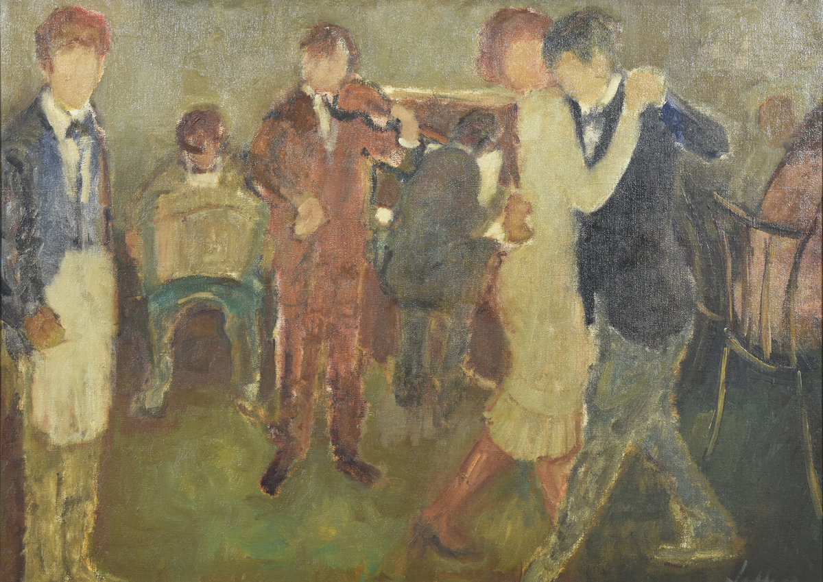 Escuela argentina, 1911 – 1989 «TRIO TIPICO» Óleo sobre tela. Mide 50 x 70 cm. Firmado abajo, a la derecha. Ref.: Obra titulada, fechada «1966» y firmada al dorso por el artista. Base u$s 100