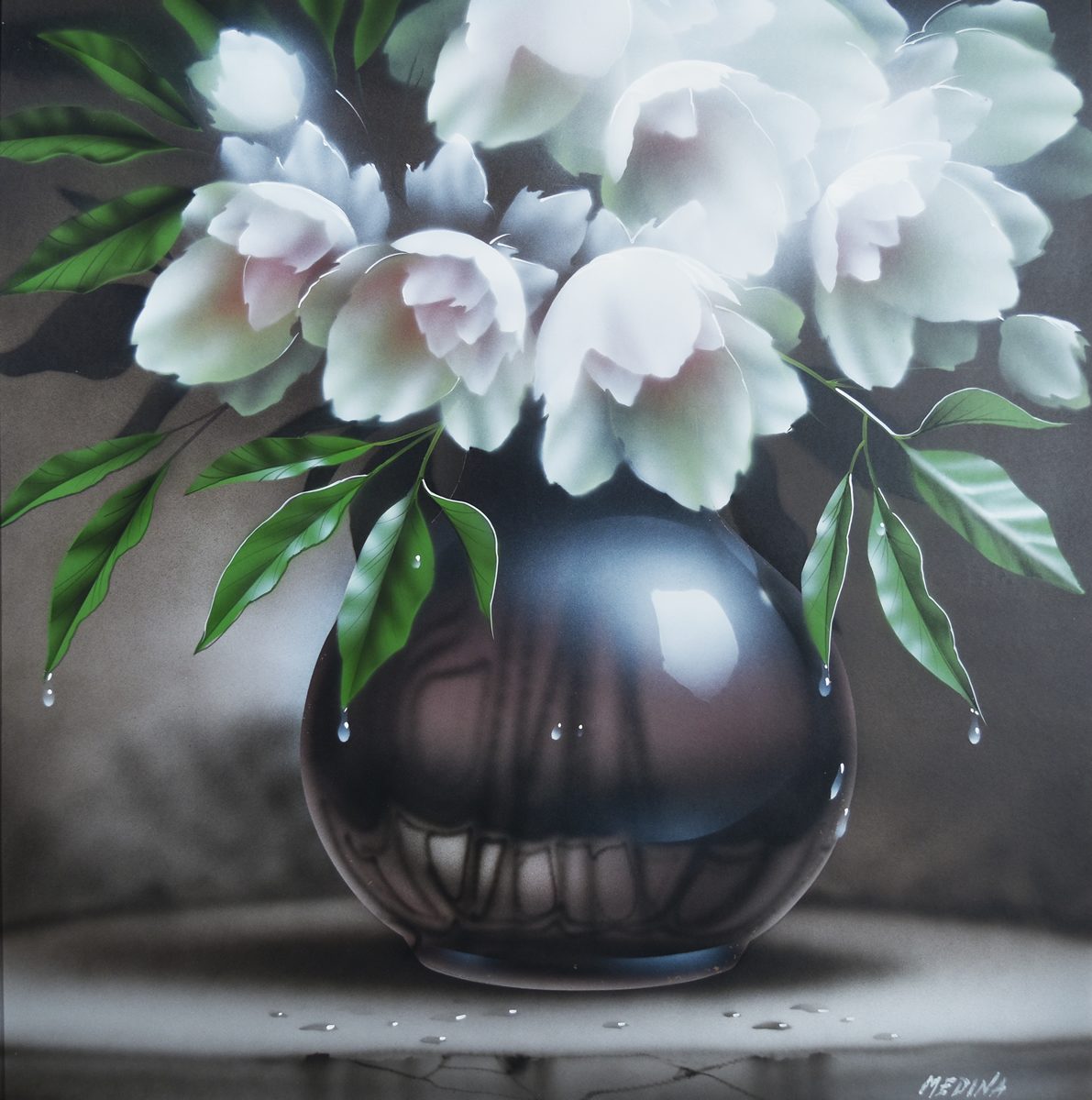 Escuela uruguaya, contemporáneo. «FLORERO» Acrílico sobre hardboard. Mide 80 x 80 cm. Firmado abajo, a la derecha. Base u$s 200