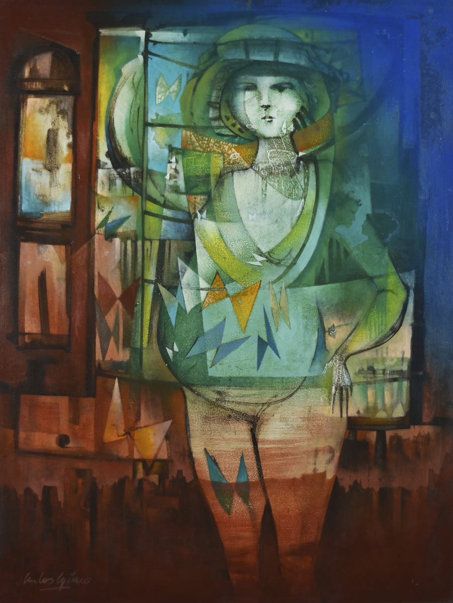 Escuela argentina, 1942 – 1997 «BRILLANTES SUEÑOS» Oleo sobre hardboard. Mide 60 x 47 cm. Firmado abajo, a la izquierda. Ref.: Obra con certificado de autenticidad al dorso, emitido por el artista. Base u$s 300