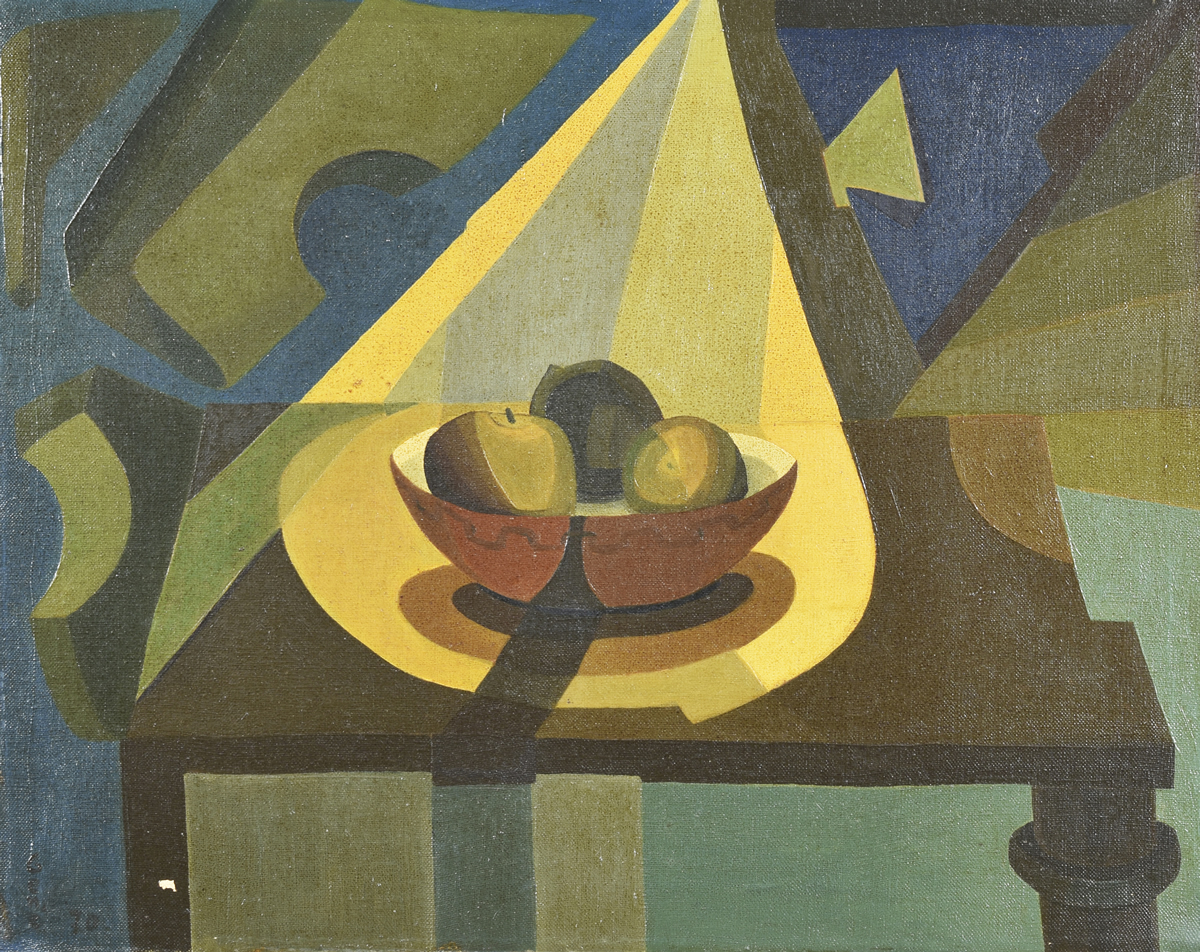Escuela argentina, 1925 – 2003 «FORMAS , LUZ Y FRUTA DE ESTACION» Óleo sobre tela. Mide 40 x 50 cm. Firmado y fechado «70» abajo, a la izquierda. Base u$s 100