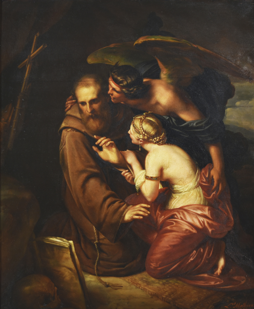 «FIGURAS» Óleo sobre tabla. Mide 70 x 55 cm. Firmado y fechado «1851» abajo, a la derecha. Base u$s 250