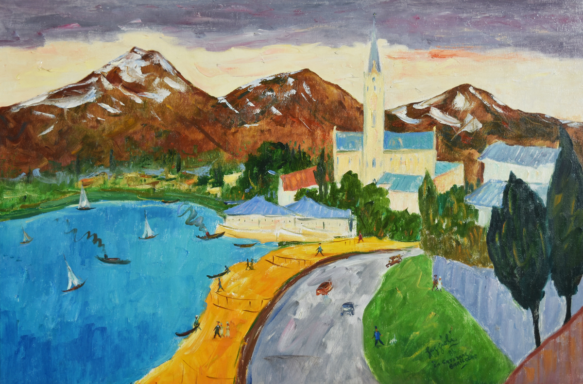 Escuela argentina, 1910 – 1996 «LA CATEDRAL (BARILOCHE)» Óleo sobre tela. Mide 50 x 75 cm. Obra titulada, fechada «86» y firmada abajo, a la derecha. Base u$s 200