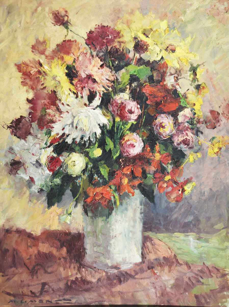 Escuela argentina, 1903 – 1974 «FLORERO» Óleo sobre tela. Mide 80 x 60 cm. Firmado abajo, a la izquierda. Base u$s 150