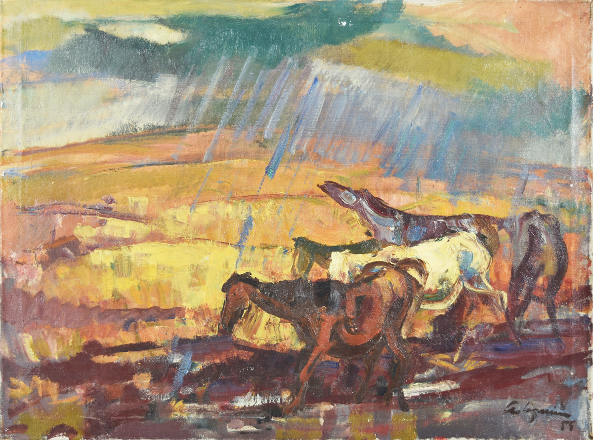 Escuela argentina, 1908 – 1972 «EN LA TORMENTA» Óleo sobre tela. Mide 60 x 80 cm. Firmado y fechado «55» abajo, a la derecha. Ref.: Obra titulada, fechada «55» y firmada al dorso, por el artista. Base u$s 500