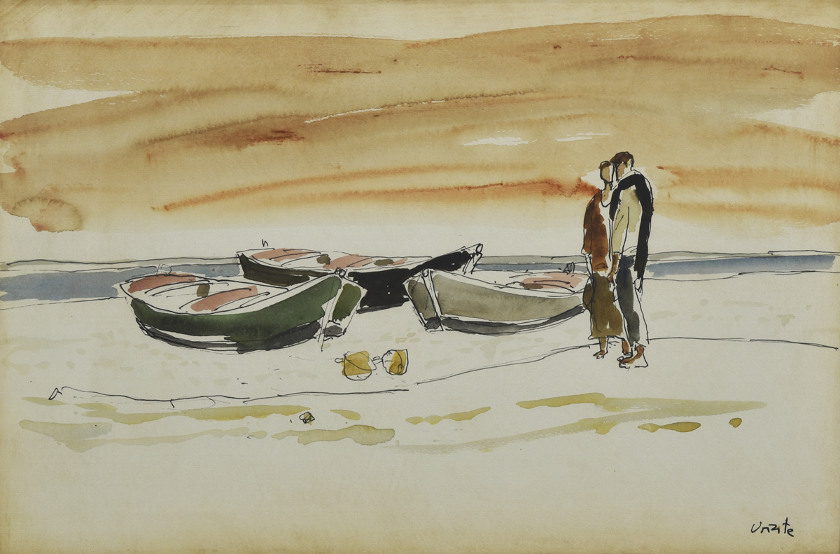 Escuela argentina, 1910 – 1995 «FIGURAS EN EL PAISAJE» Acuarela sobre papel. Mide 34 x 50 cm. Firmada abajo, a la derecha. Base u$s 200