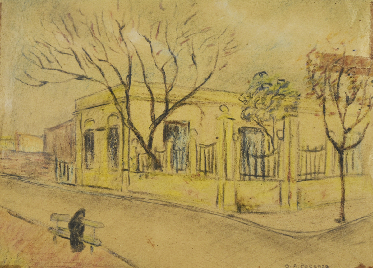 Escuela argentina, 1904 – 1971 «QUINTA ANTIGUA» Técnica mixta sobre papel. Mide 17 x 23 cm. Firmada abajo, a la derecha. Ref.: Obra titulada al dorso. Ex colección familia del artista. Base u$s 150