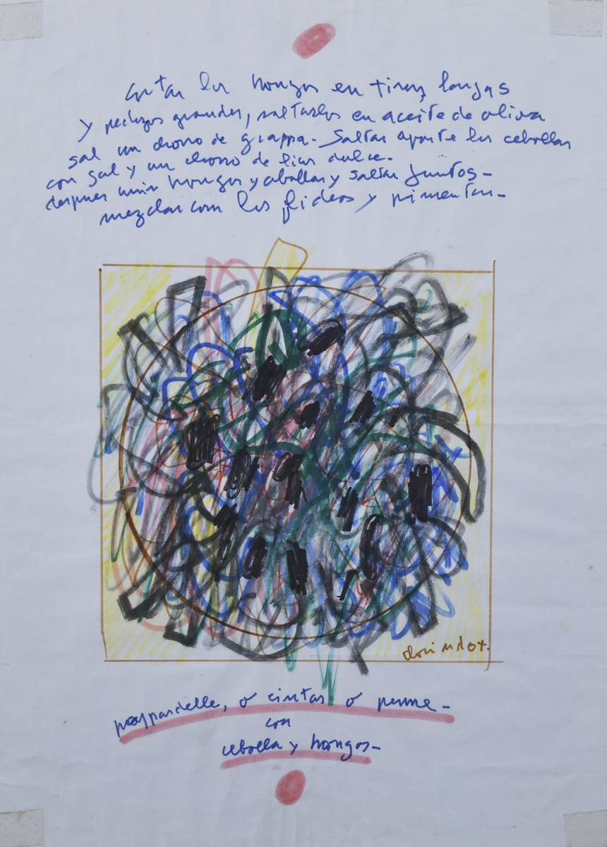 Escuela argentina, 1923 – 2013 «RECETA» Técnica mixta sobre papel. Mide 50 x 40 cm. Firmado abajo, a la derecha. Base u$s 250