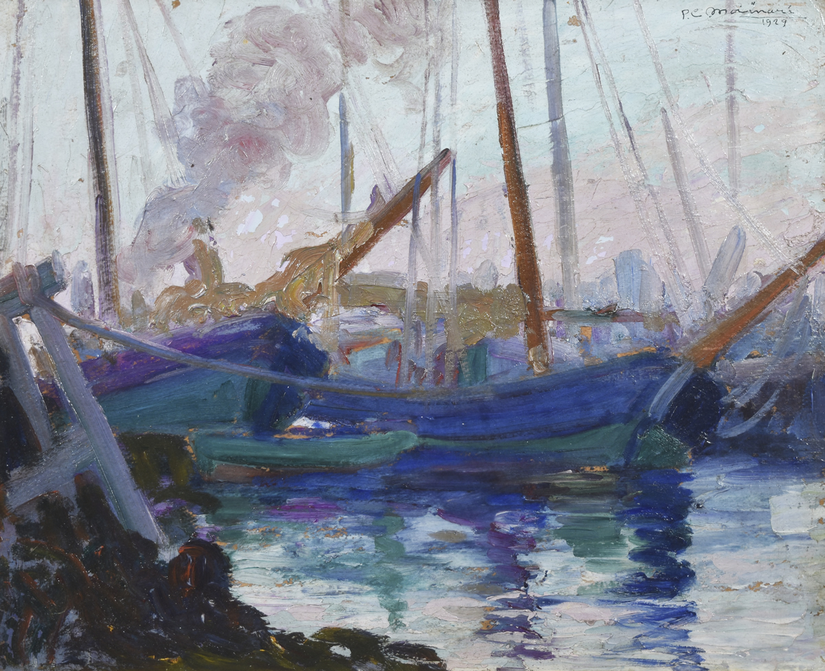 Escuela argentina, 1884 – 1941 «BARCAS» Oleo sobre cartón. Mide 37 x 45 cm. Firmado y fechado «1929» arriba, a la derecha. Base u$s 250